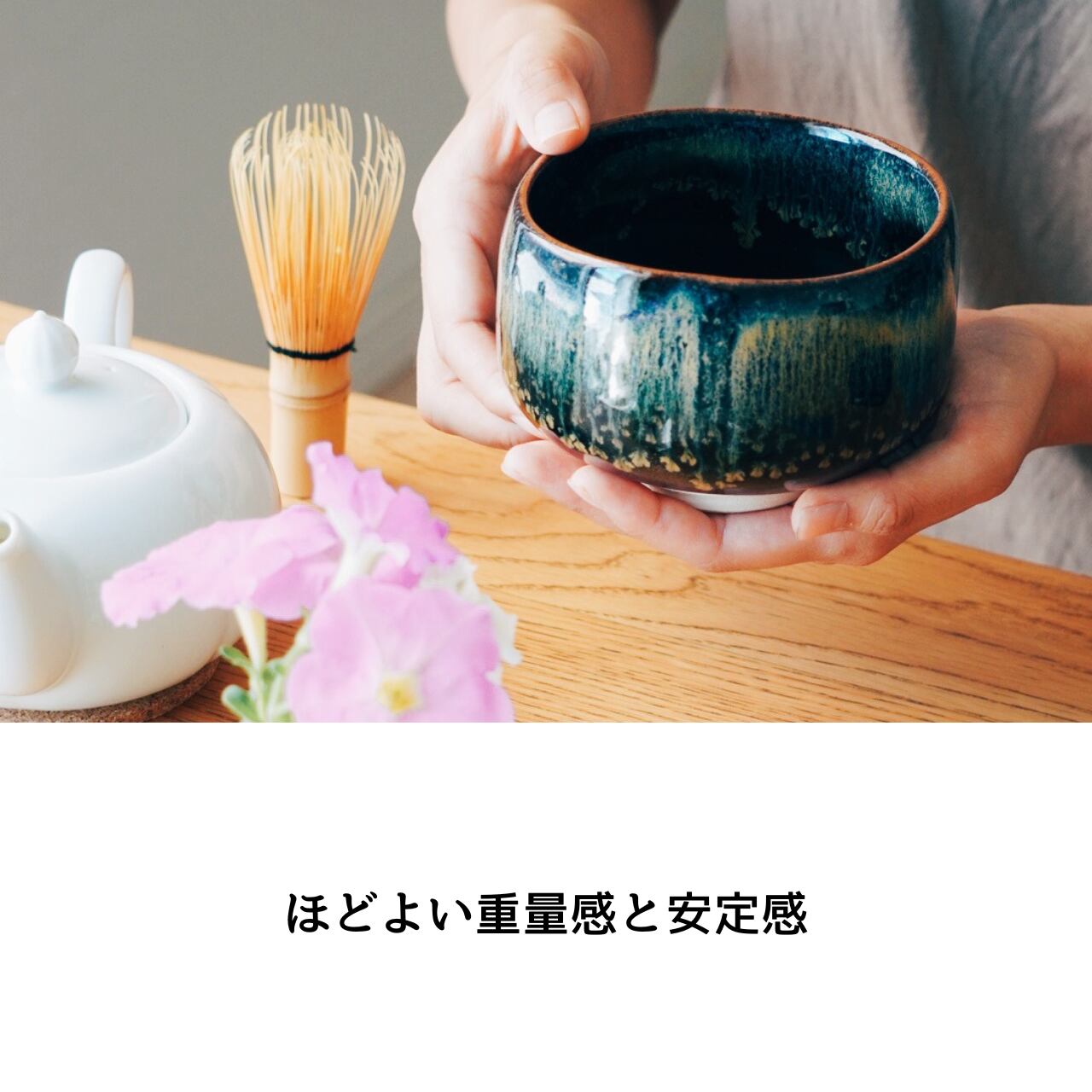 手に持ったときの馴染みも良く、抹茶も抜群に点てやすいです。